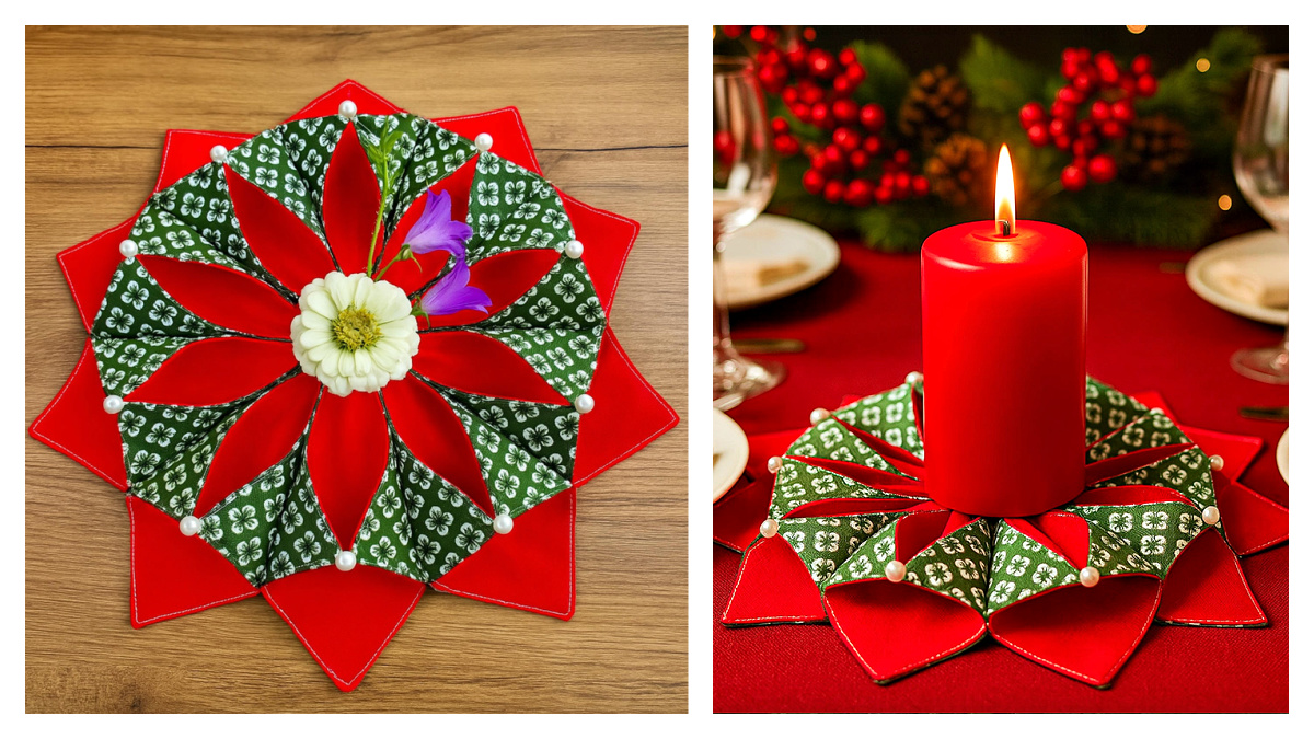 Poinsettia Christmas Candle Mat Sewing Pattern
